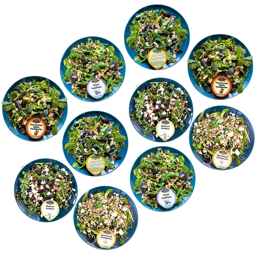 We offer 5, 10, and 20 salad bundles, as well as the option to build your own bundle! Whether you want a sampler, a healthy meal plan, or a salad party pack, we’ve got you covered.